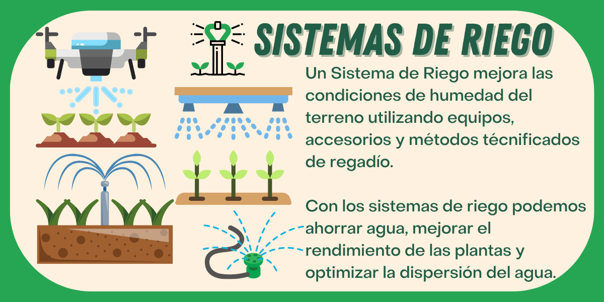 Los sistemas de irrigación conforman técnicas que se inician desde la captación, tratamiento y distribución del agua hacia el área de riego.